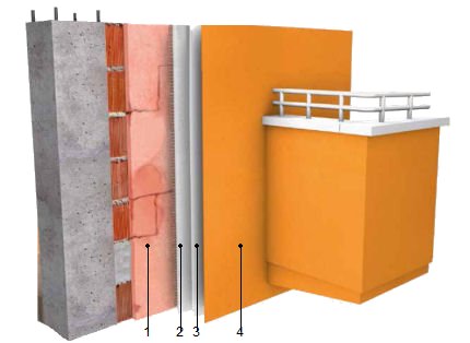 Limpieza de la superficie soporte. Aplicación del producto fungicida. Aplicación de la mano de impregnación incolora consolidante. Aplicación de una primera capa de mortero. Colocación de la malla de refuerzo. Aplicación de una segunda capa de mortero sobre la malla de refuerzo. Aplicación de una mano de fondo. Aplicación de dos manos de acabado.